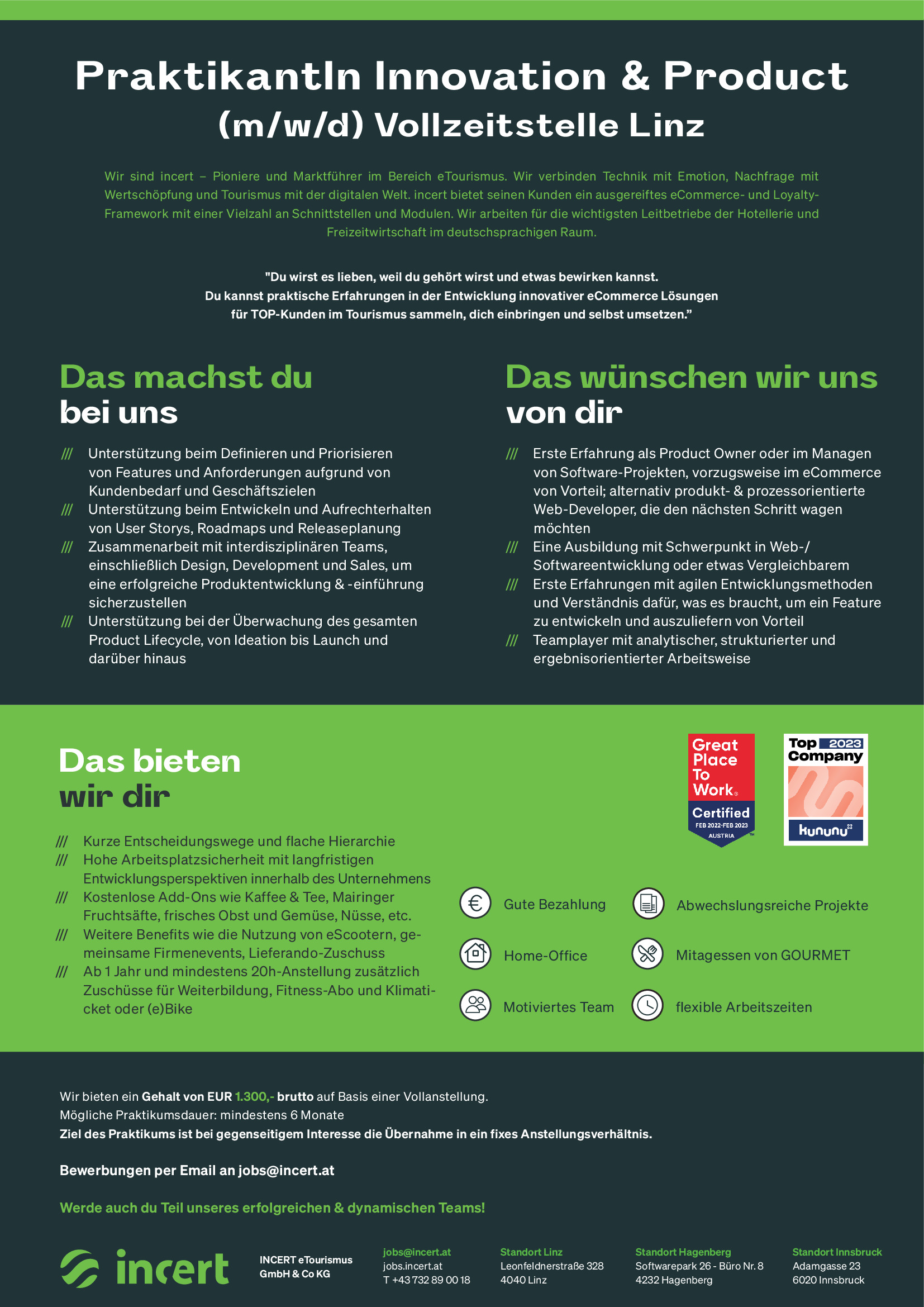 Alle Jobs von incert eTourismus GmbH & Co KG